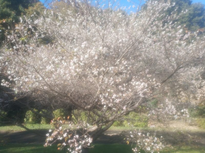 秋なのに桜が綺麗に咲いており、感動しました。