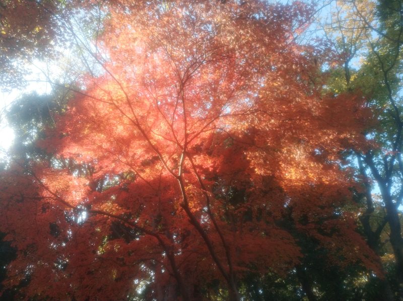 とても綺麗な紅葉。思わず葉っぱを拾って持ち帰ります。