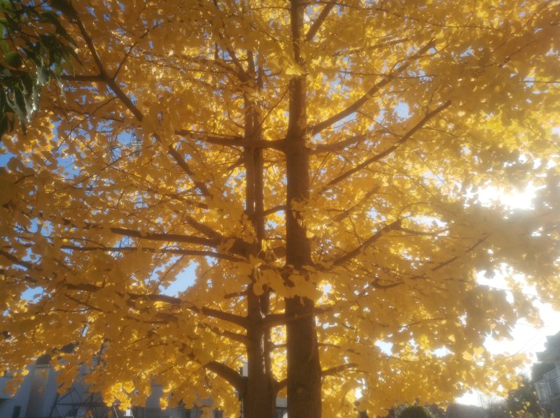 するとあまりに綺麗なイチョウが咲き誇っており、足を止めてしまいました。すると葉っぱを目の前に落としたので持ち帰りました。また来年も会いたい。